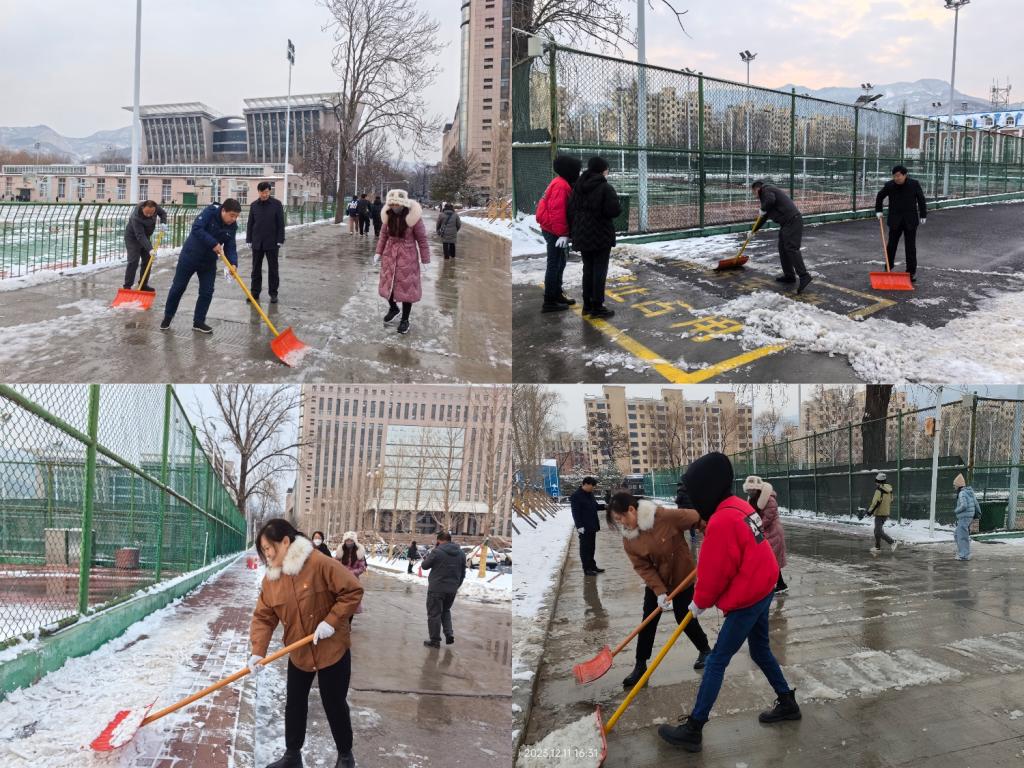 经过大家的共同努力,主楼前、行知广场两侧及地下通道入口两侧的积雪被清理得干干净净,道路恢复了畅通,师生的出行安全得到了保障,大家感到无比的欣慰和满足。